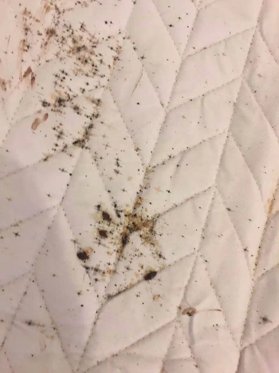 الناس لا غالبا ما تنظر في الفراش حتى انهم تركوا بصماتهم مع ظهور بقع باللون الأحمر في خطوط متعرجة أو مجموعات صغيرة هو علامة رئيسية لوجود البق.